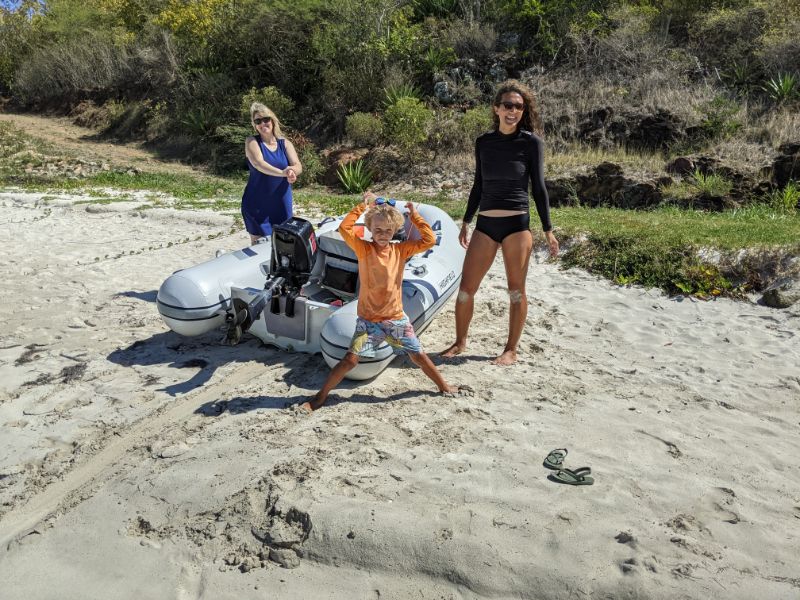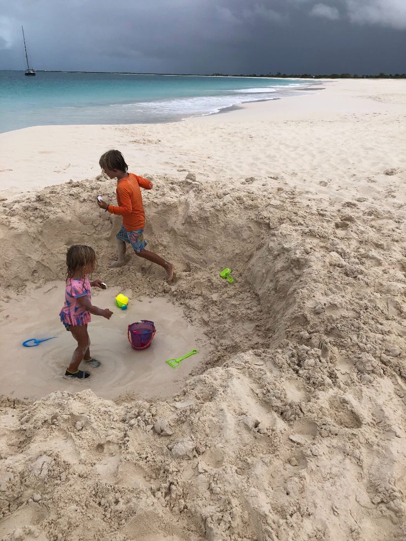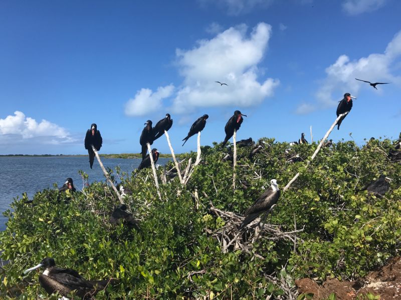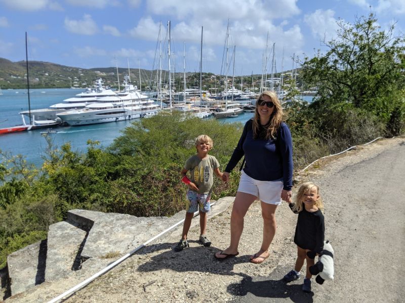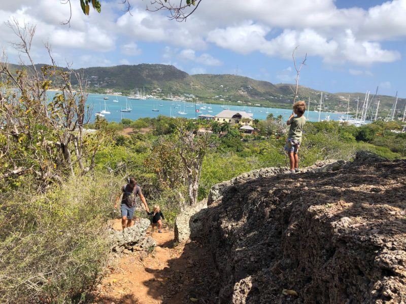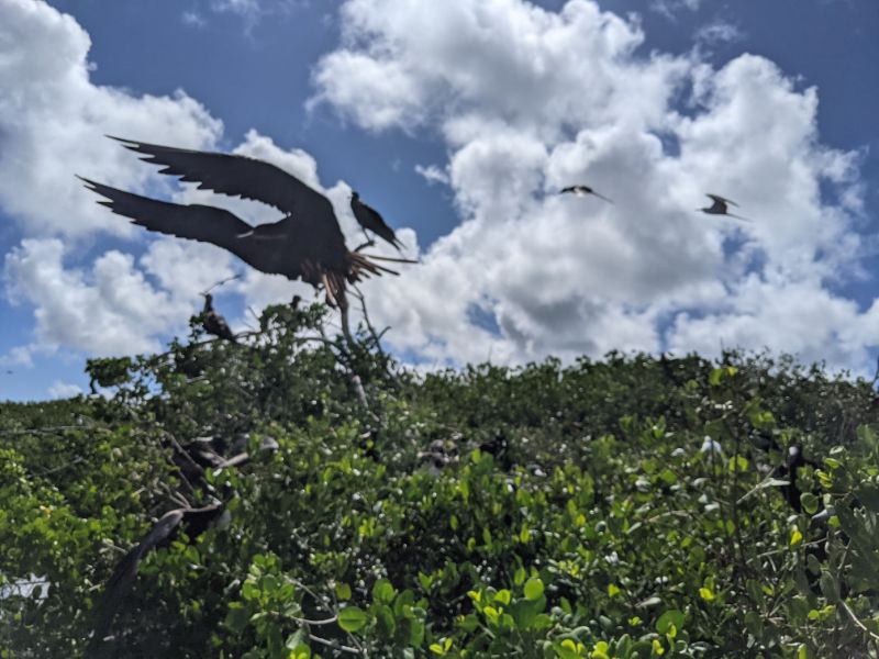 Mega yachts. Antigua 600 race. Glassy water in Falmouth. Reunite with cruising friends from SV Mowzer. They leave for good. Leon builds a robot. Many fees to enter Antigua. Abandoned casino in Jolly Harbor. Thousands of dusty slot machines left behind. Eric’s sister visits. Joy of family. Sea sickness. Lots of salty chips. Turquoise waters. Robert De Niro’s unwelcome luxury development on Barbuda. Margot spots a band of horses running on the beach at twilight. Magnificent frigate bird sanctuary. Red throats inflate like balloons. Great Bird Island is a giant terrarium. Fierce, unrelenting winds develop. Eric has debilitating back spasms. Can’t sail. Feeling lonely without support. Wind snaps dinghy line. Burgers and shakes at Sweet T’s. Leon finds artifact in ruins.