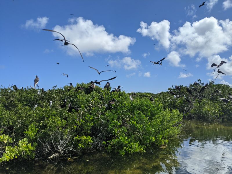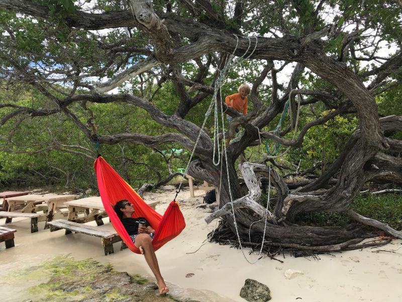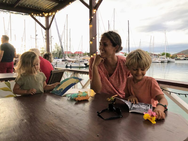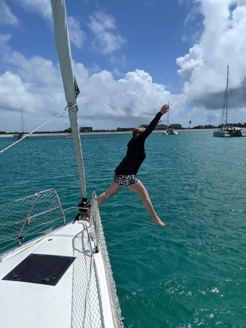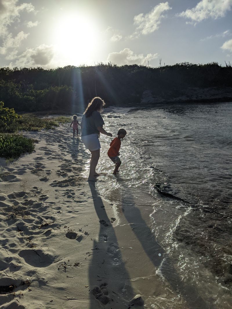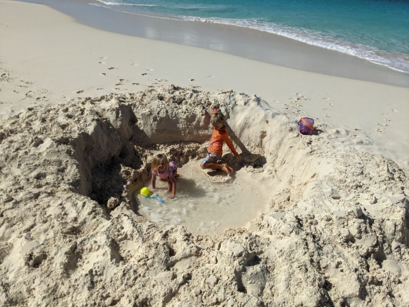 Mega yachts. Antigua 600 race. Glassy water in Falmouth. Reunite with cruising friends from SV Mowzer. They leave for good. Leon builds a robot. Many fees to enter Antigua. Abandoned casino in Jolly Harbor. Thousands of dusty slot machines left behind. Eric’s sister visits. Joy of family. Sea sickness. Lots of salty chips. Turquoise waters. Robert De Niro’s unwelcome luxury development on Barbuda. Margot spots a band of horses running on the beach at twilight. Magnificent frigate bird sanctuary. Red throats inflate like balloons. Great Bird Island is a giant terrarium. Fierce, unrelenting winds develop. Eric has debilitating back spasms. Can’t sail. Feeling lonely without support. Wind snaps dinghy line. Burgers and shakes at Sweet T’s. Leon finds artifact in ruins.